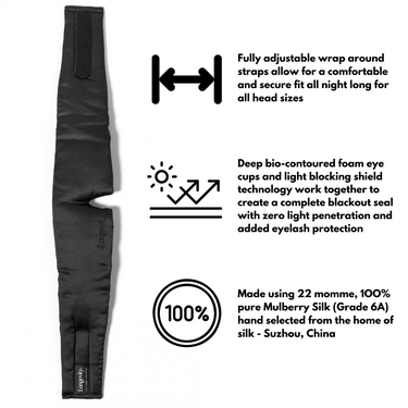 Creates total darkness to support deeper REM sleep and uninterrupted cycles. Eliminating unwanted light from your surroundings, allows your body to produce melatonin naturally and more efficiently, helping you fall asleep faster and stay in deeper sleep stages for longer.